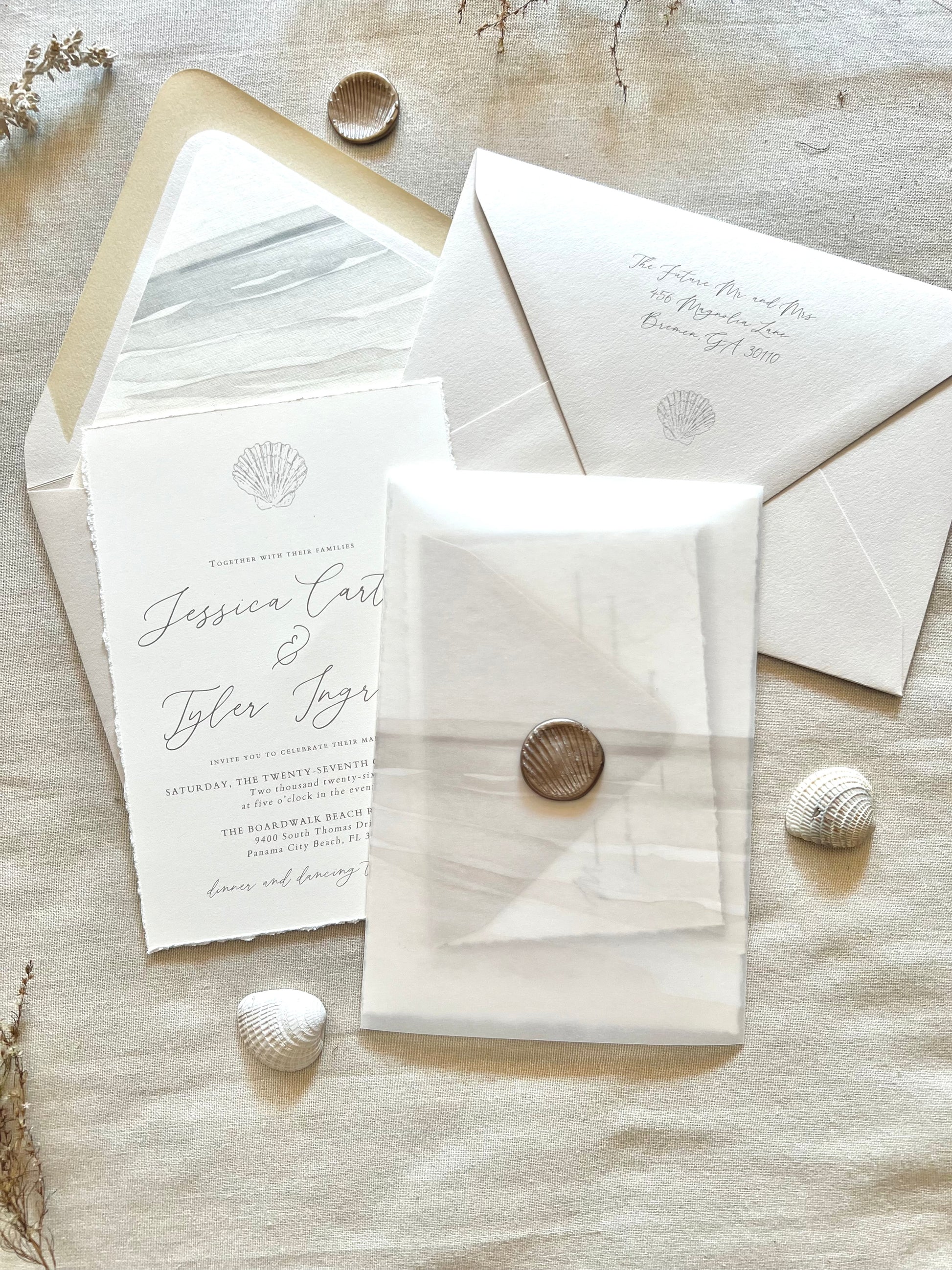Beach Wedding Invitation with Vellum & Seashell Wax Seal
