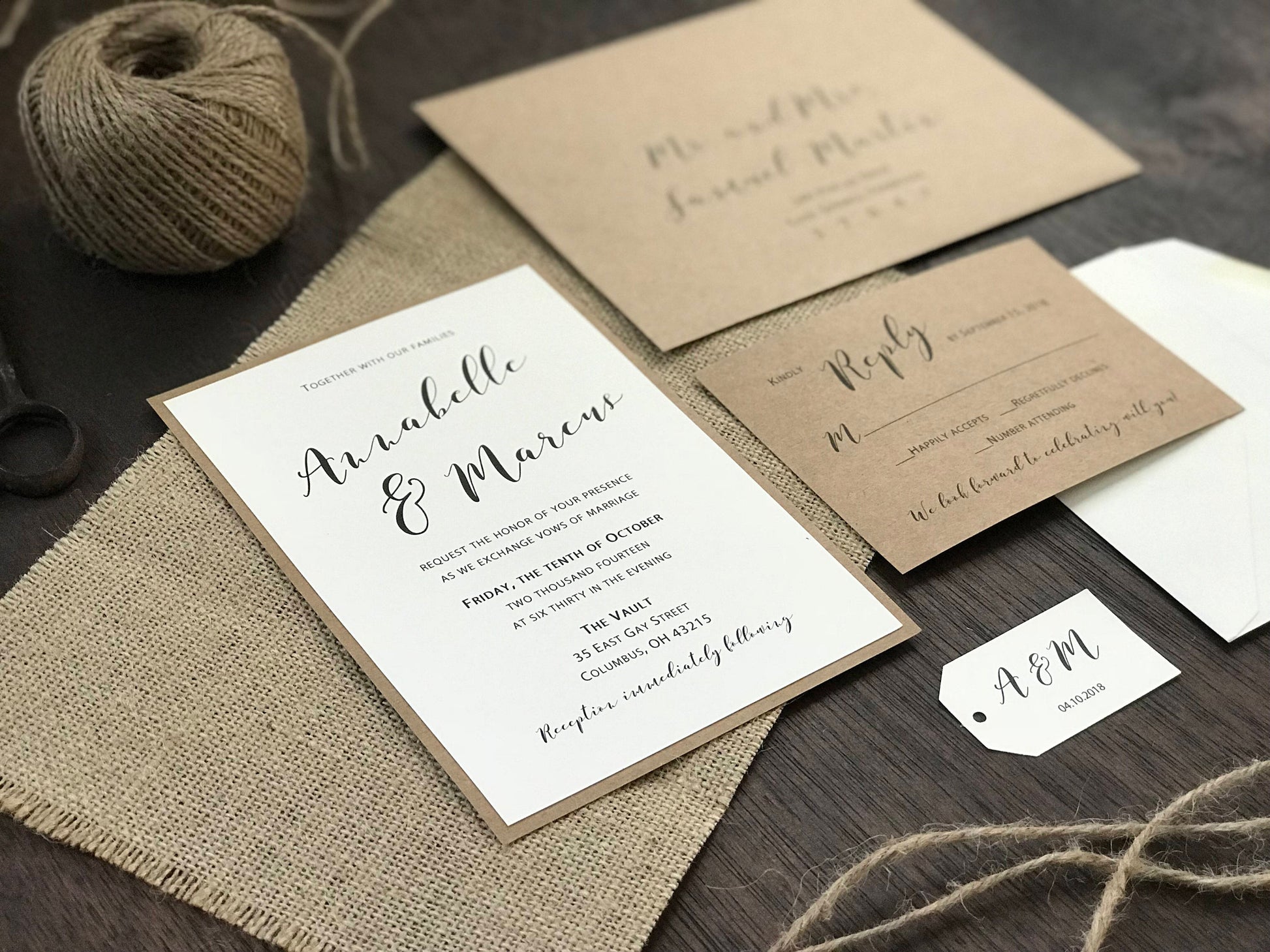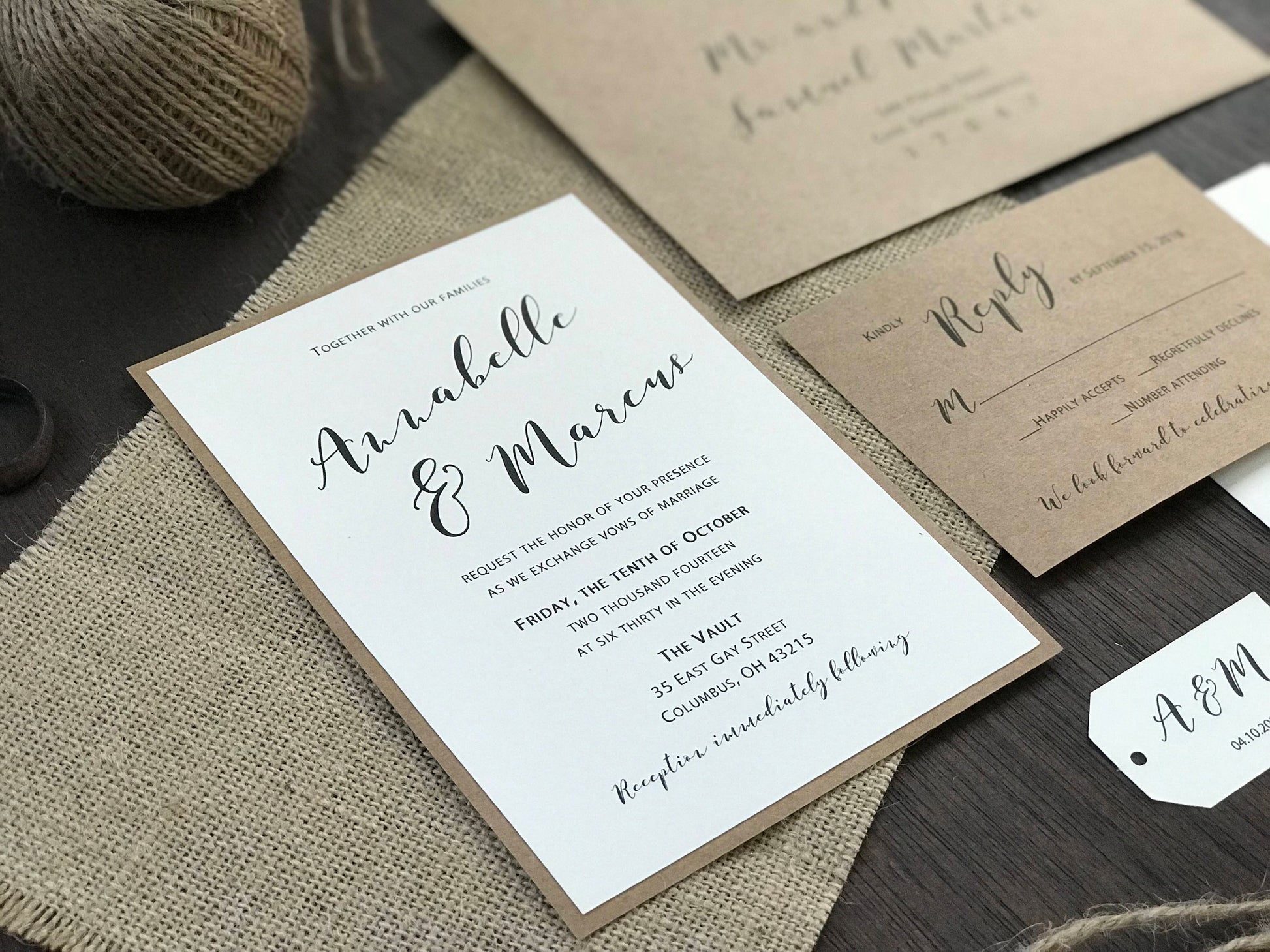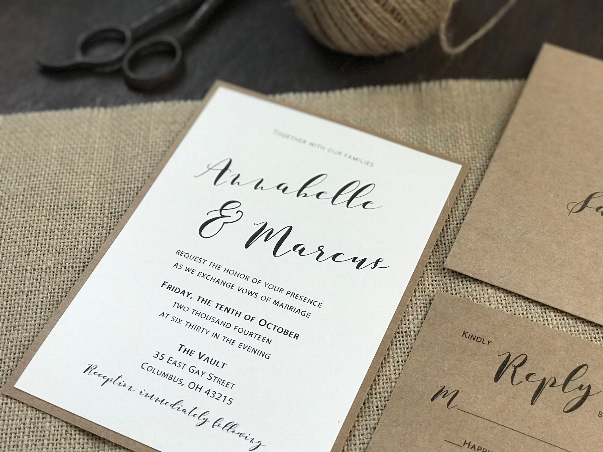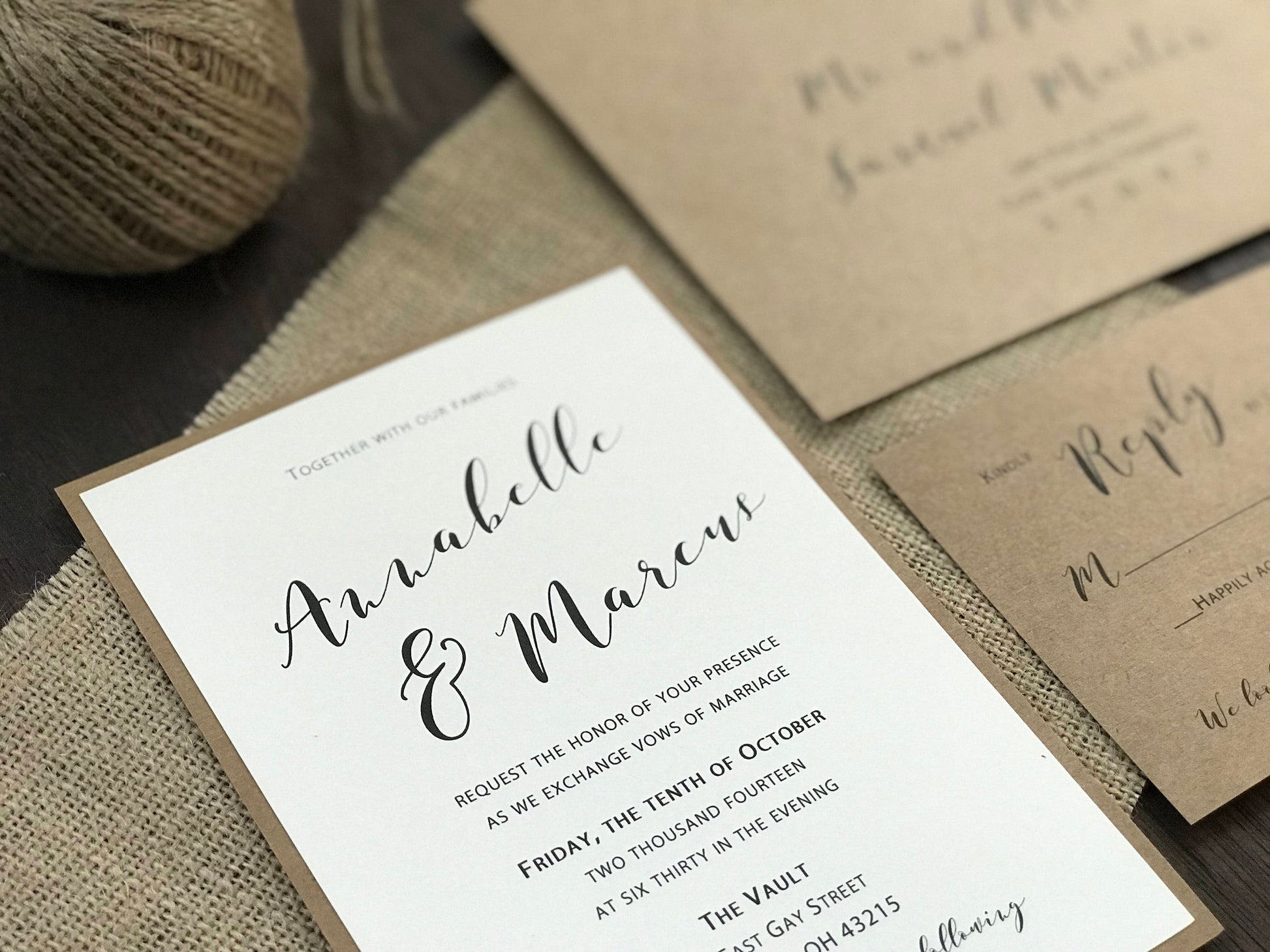 Burlap Wedding Invitation with twine