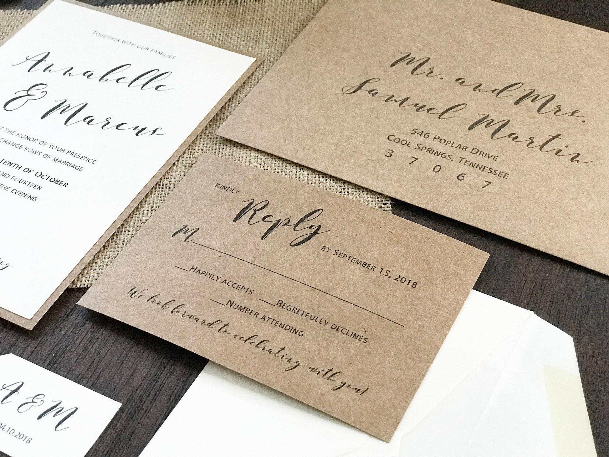 - full assembly just as you see in the listing pictures with RSVPs and any other inserts wrapped inside the burlap (if purchased)