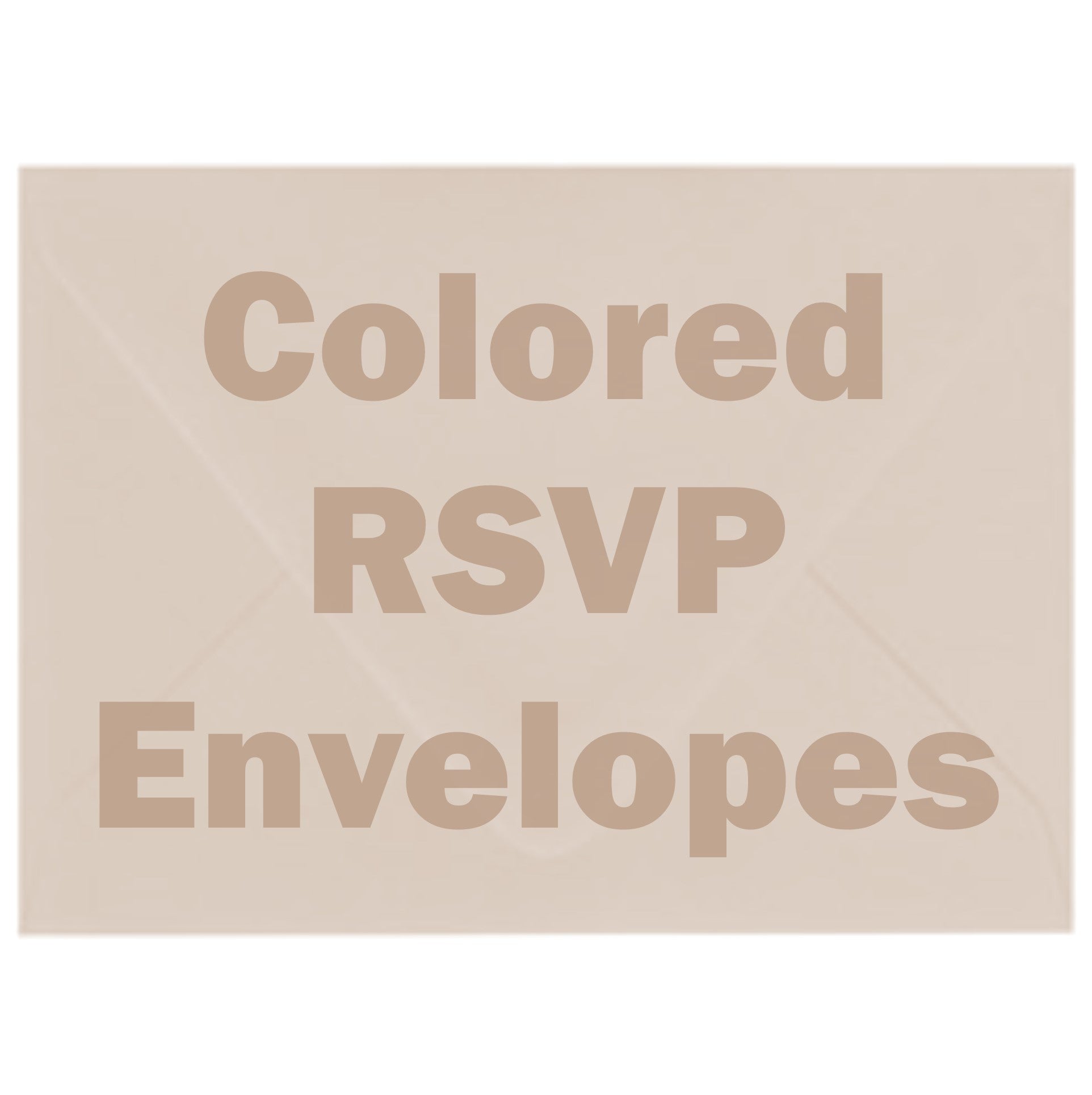 Instead of white, ivory or kraft envelopes you can also purchase colored envelopes! Please note dark colored envelopes can not have envelope addressing done on them. Those would have to be hand addressed by you with a paint or calligraphy pen or something similar.