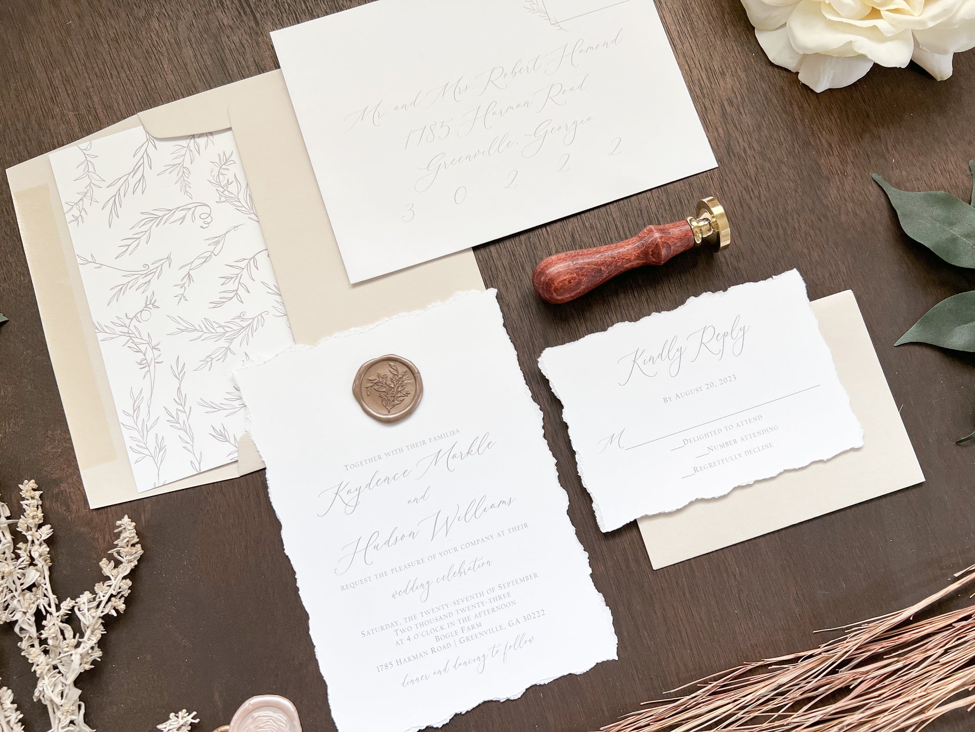 Minimalist Deckled Edge Wedding Invitation with Wax Seal