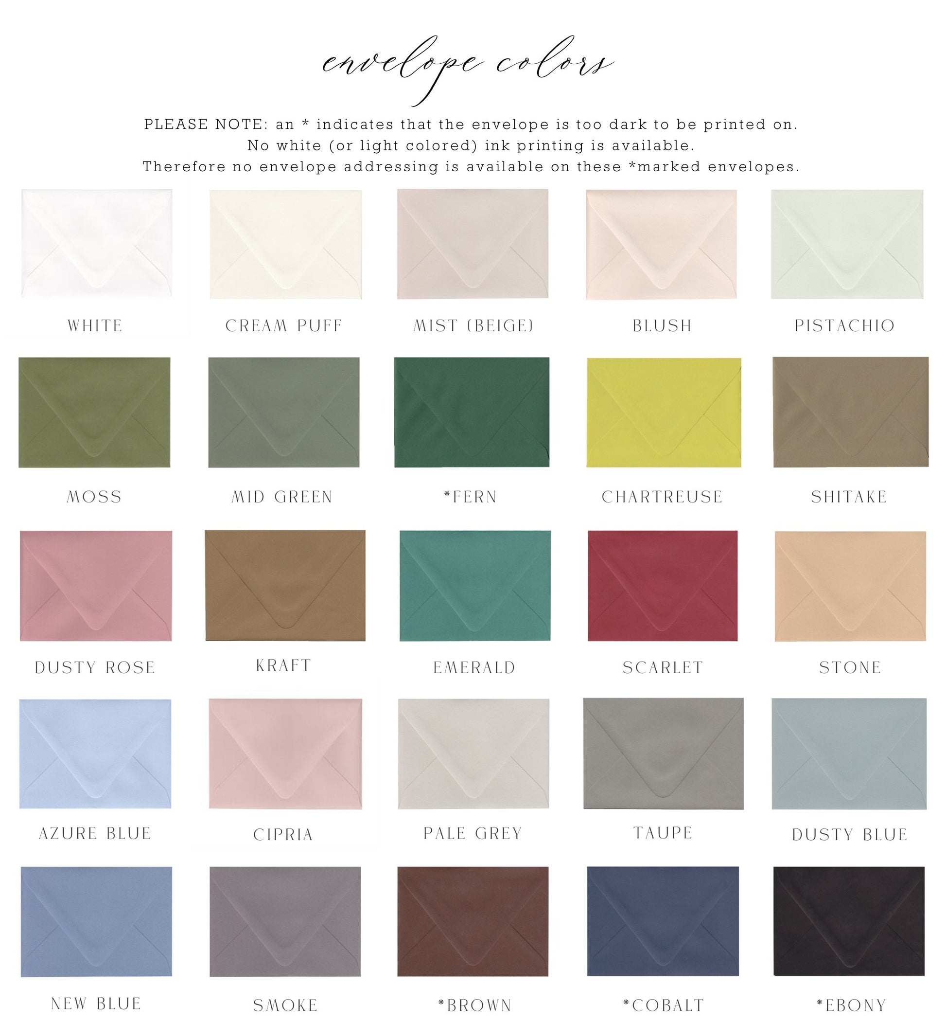 If a different colored envelope is desired than the options shown, please reach out here to discuss other color options available