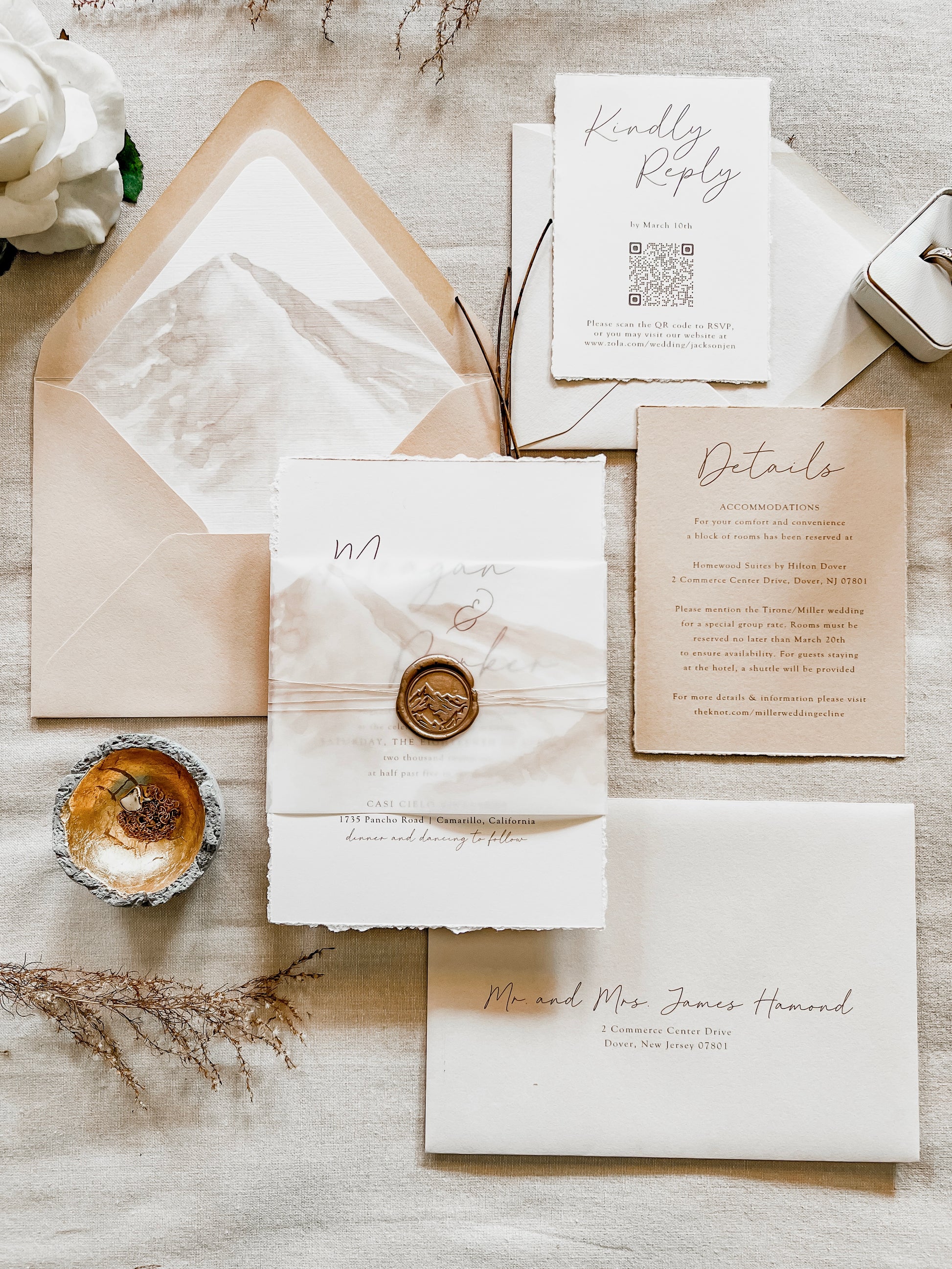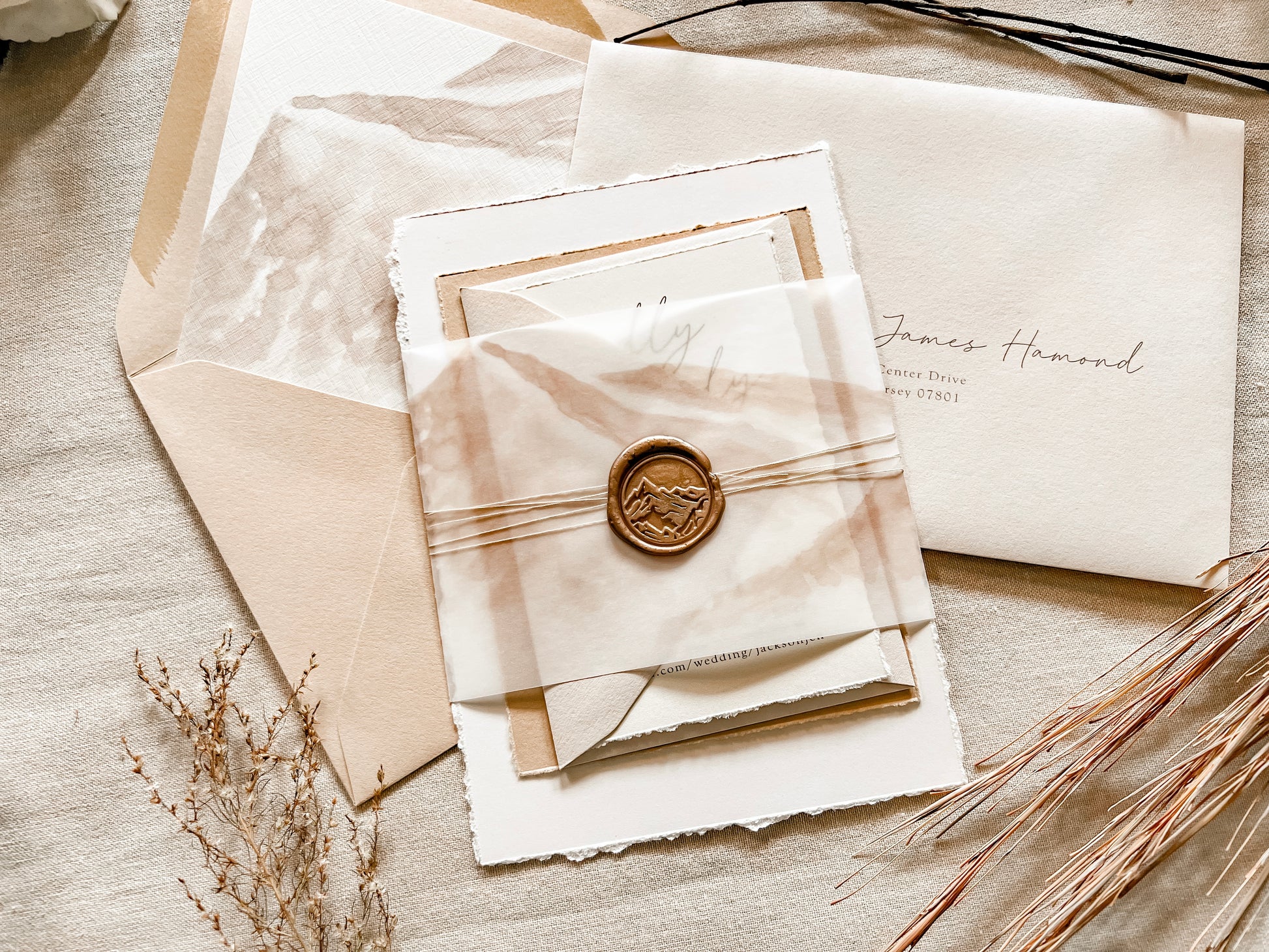 Mountain Wedding Invitation with Vellum & Wax Seal