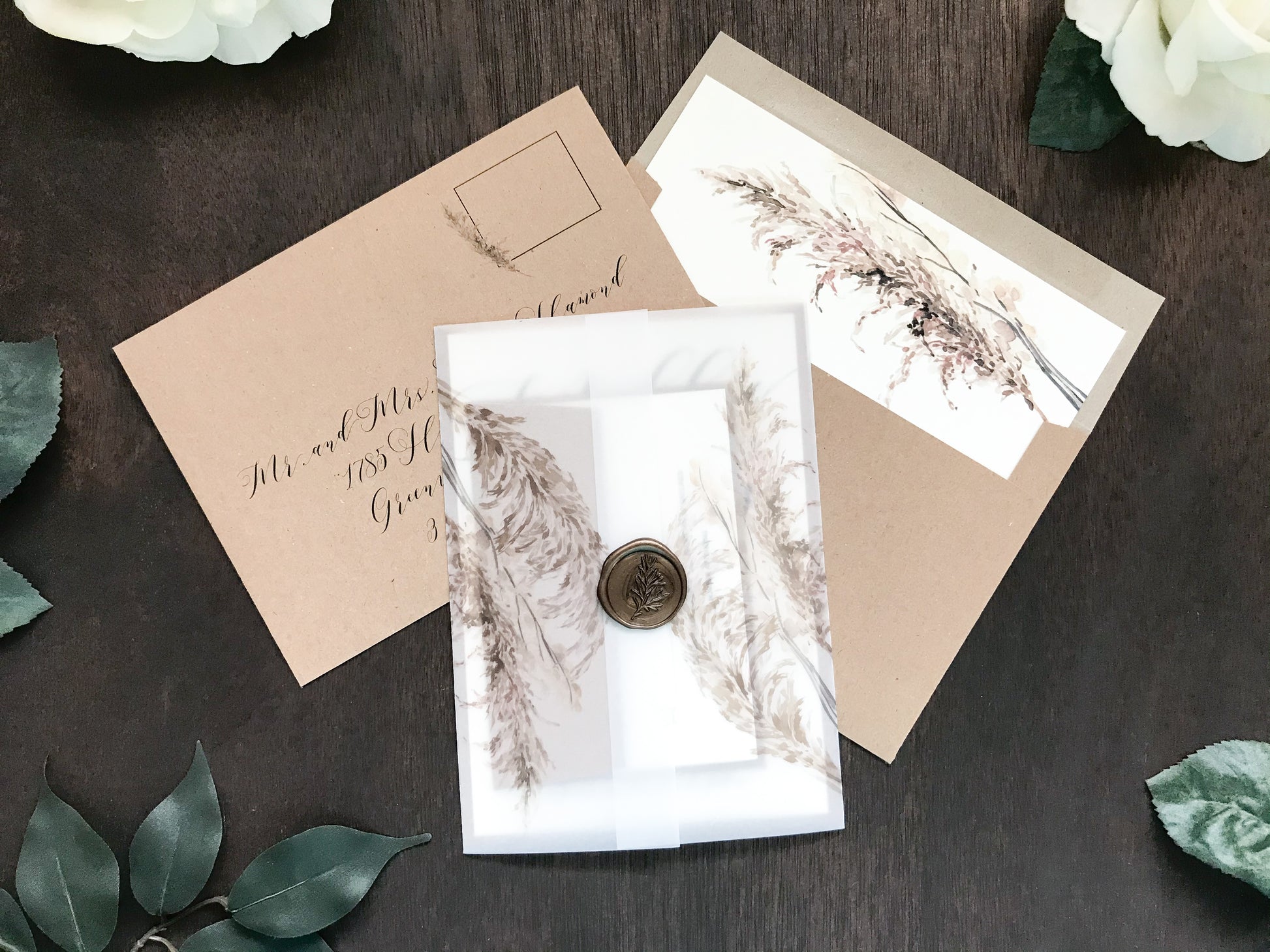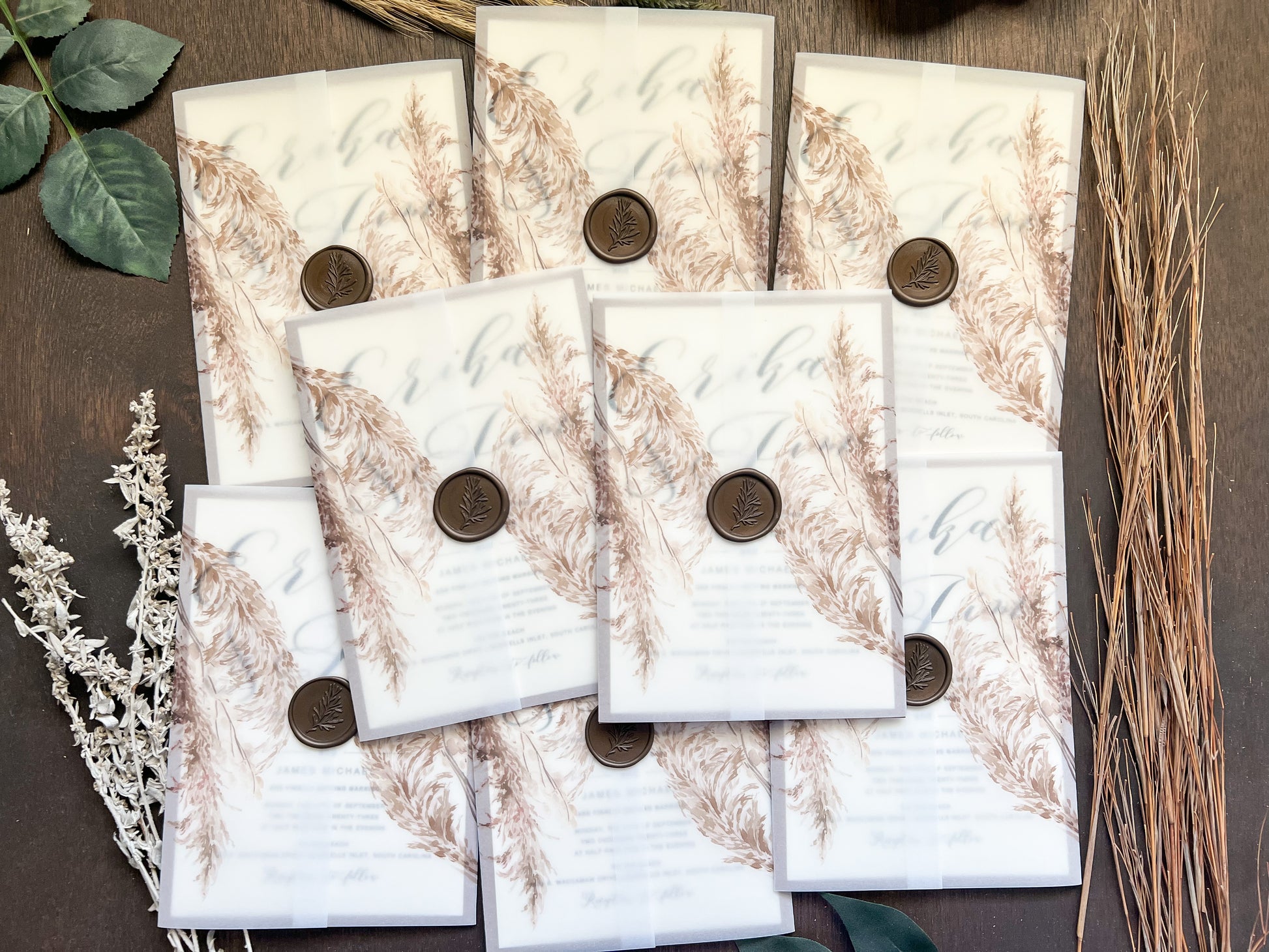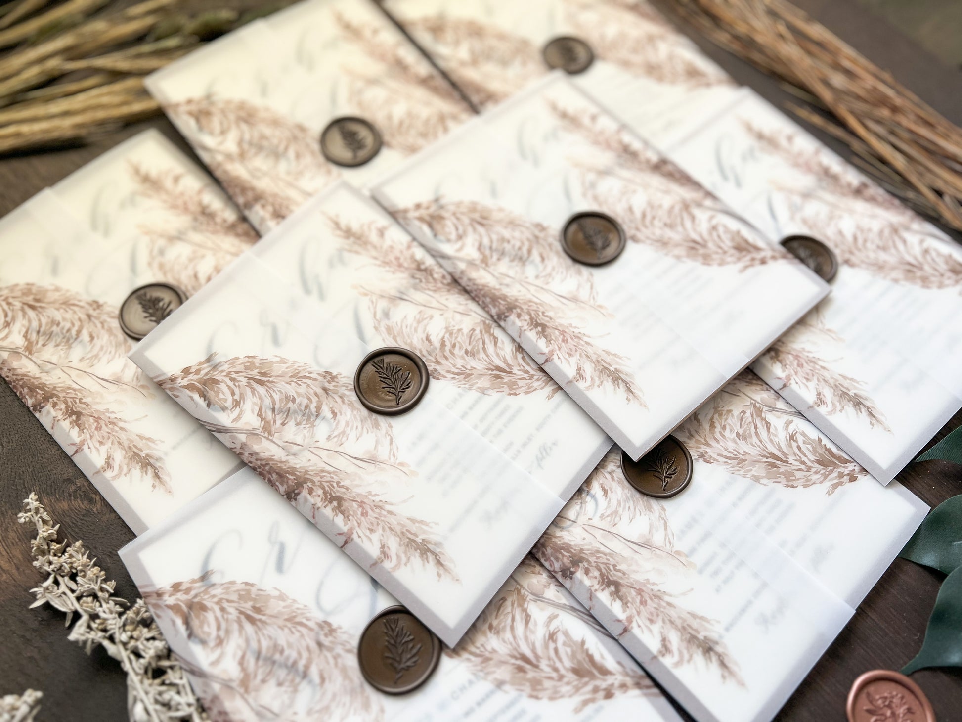 Vellum Wedding Invitation with Pampas Grass & Wax Seal